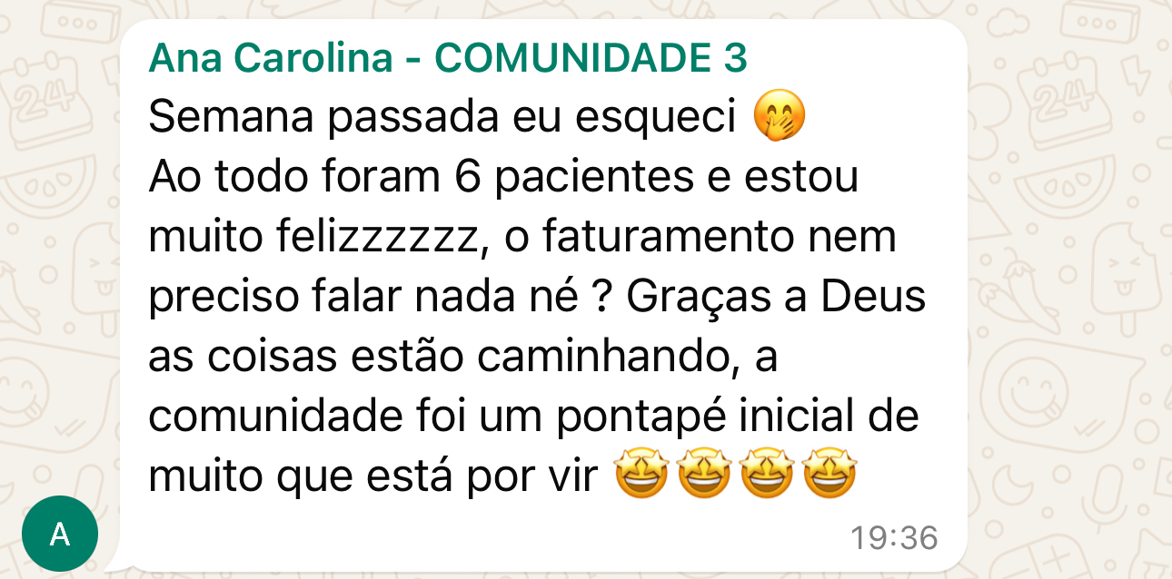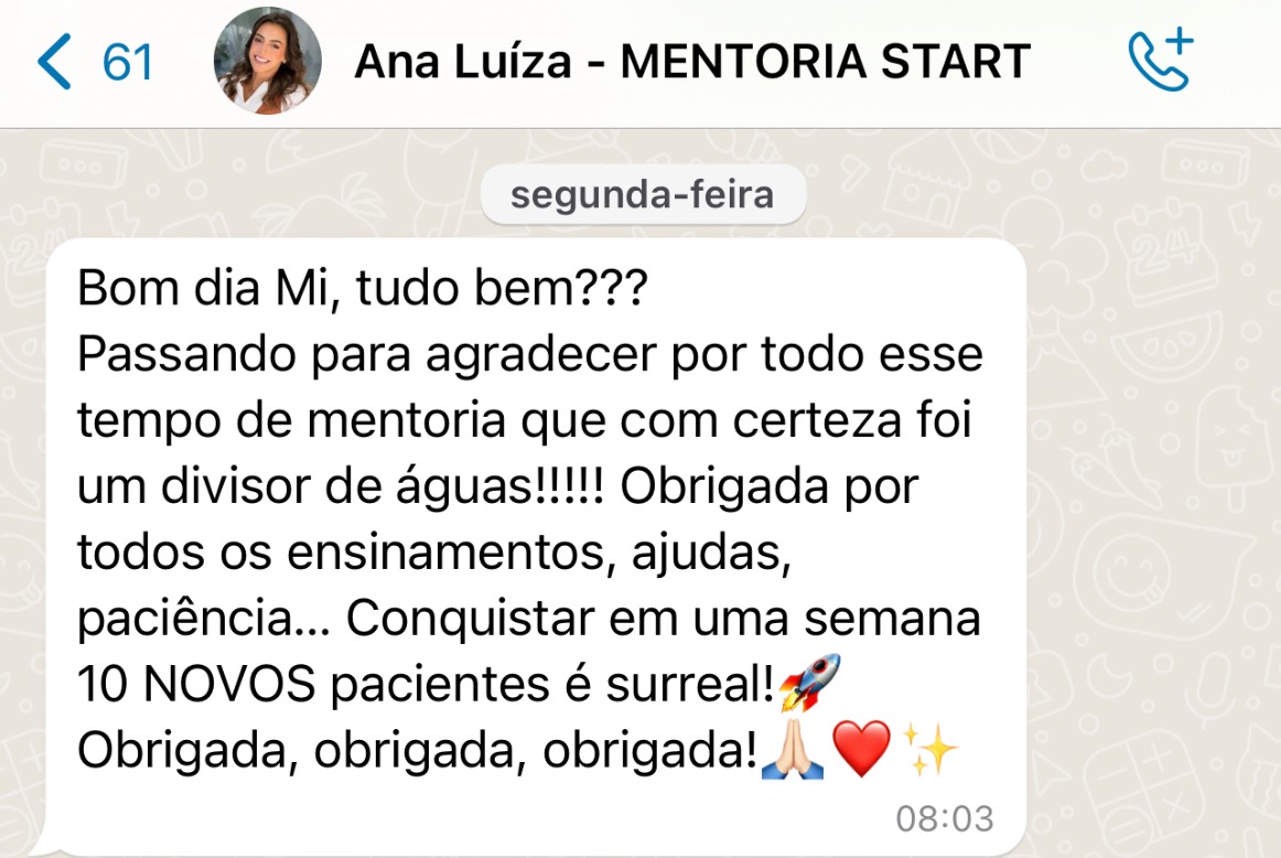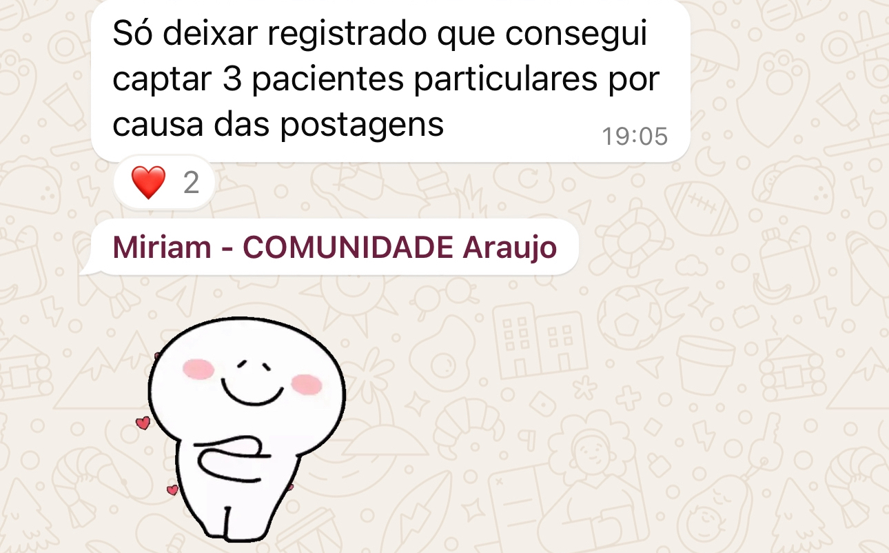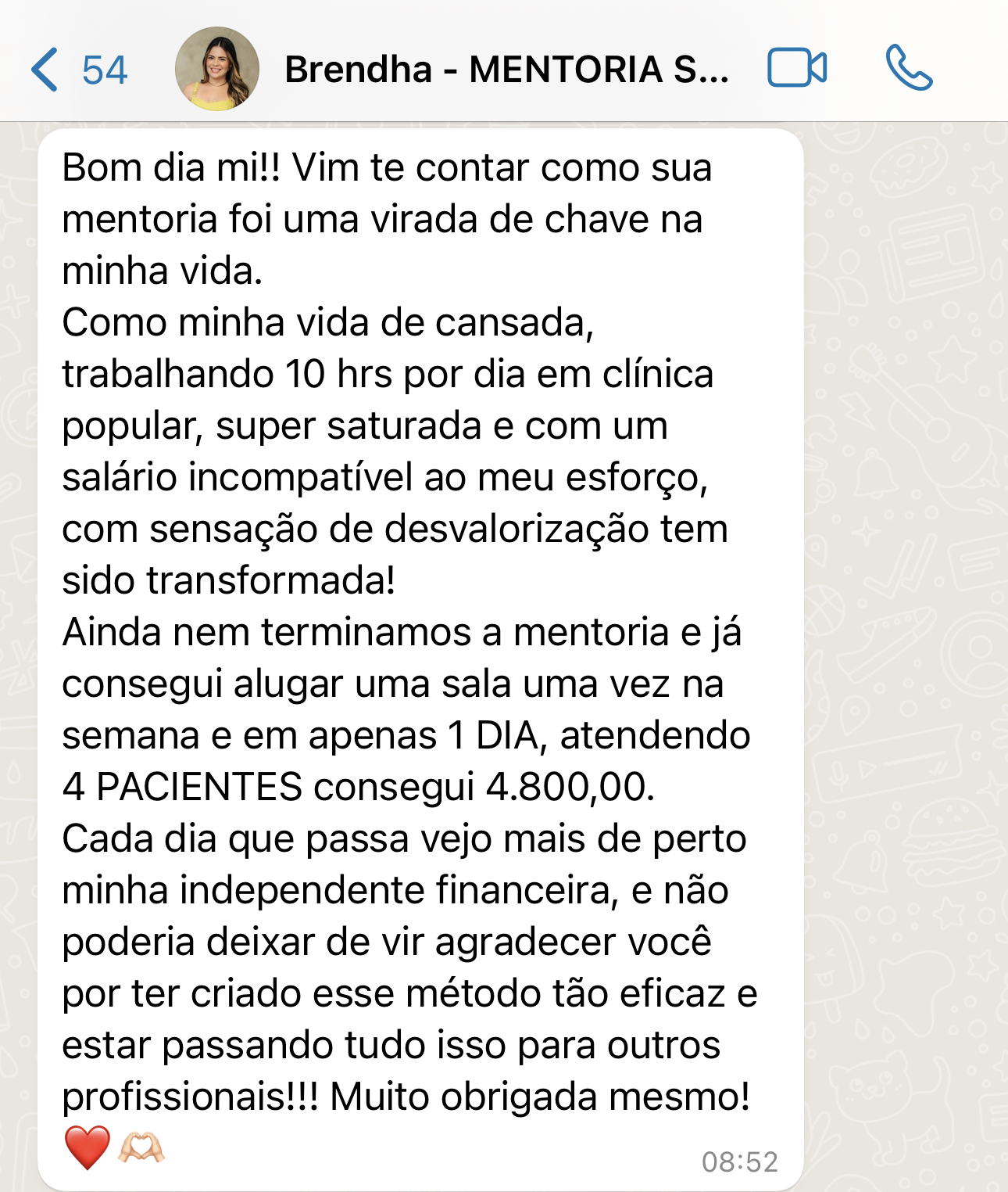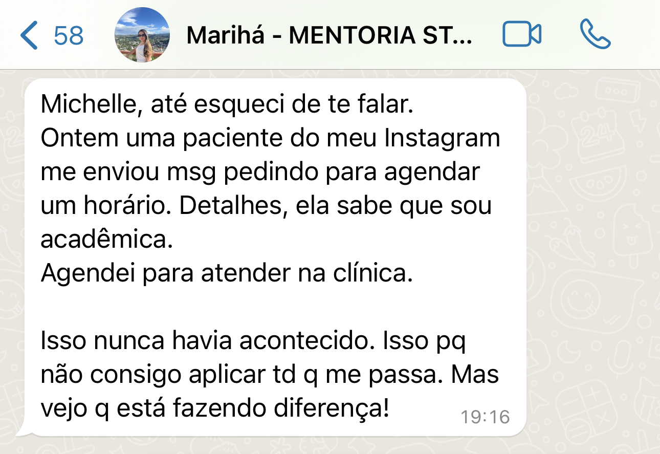 A ideia de trabalhar com liberdade de agenda, aumentar o seu faturamento por meio da captação de pacientes certos que pagam o valor justo pelo seu trabalho. É isso que centenas de alunas que aprenderam a metodologia e aplicaram, conseguiram.